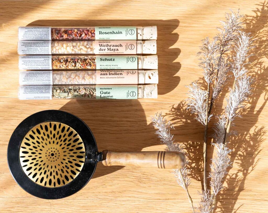 So wie in vielen anderen Kulturen auf der ganzen Welt werden auch bei uns aromatische Hölzer, Harze, Samen und Kräuter verräuchert – für allgemeines Wohlbefinden, zur Desinfektion und Heilung oder der energetischen Reinigung von Räumen. Besonders kraft- und stimmungsvoll ist dieser Brauch in der Zeit der Raunächte. Hochwertige Räucherutensilien sowie Räucherwerk aus aller Welt findet ihr bei uns im Weltladen.